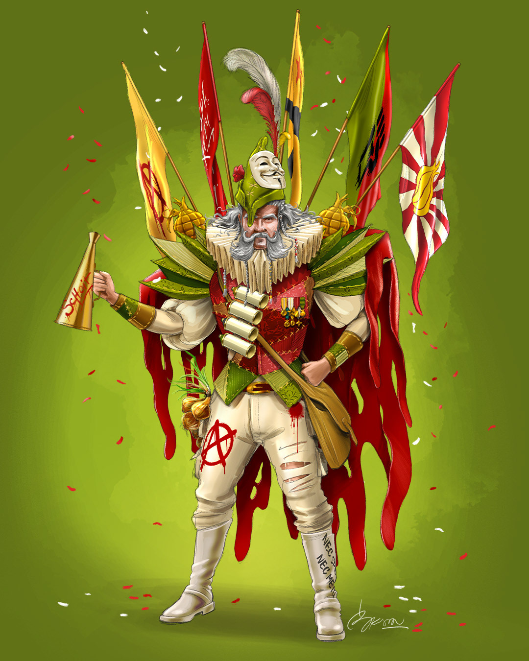 Costume designs for carnival associations in Aalst, Belgium.