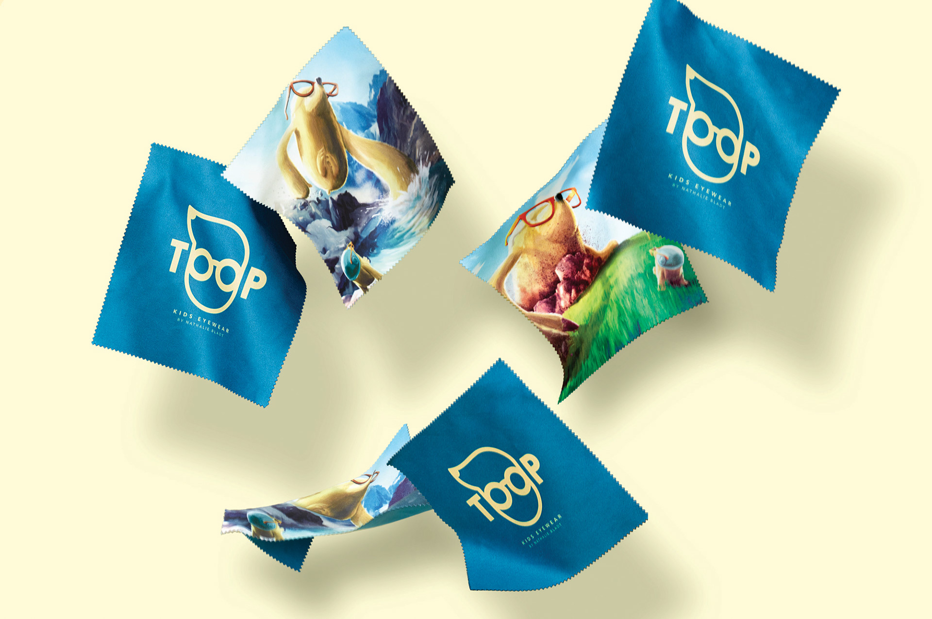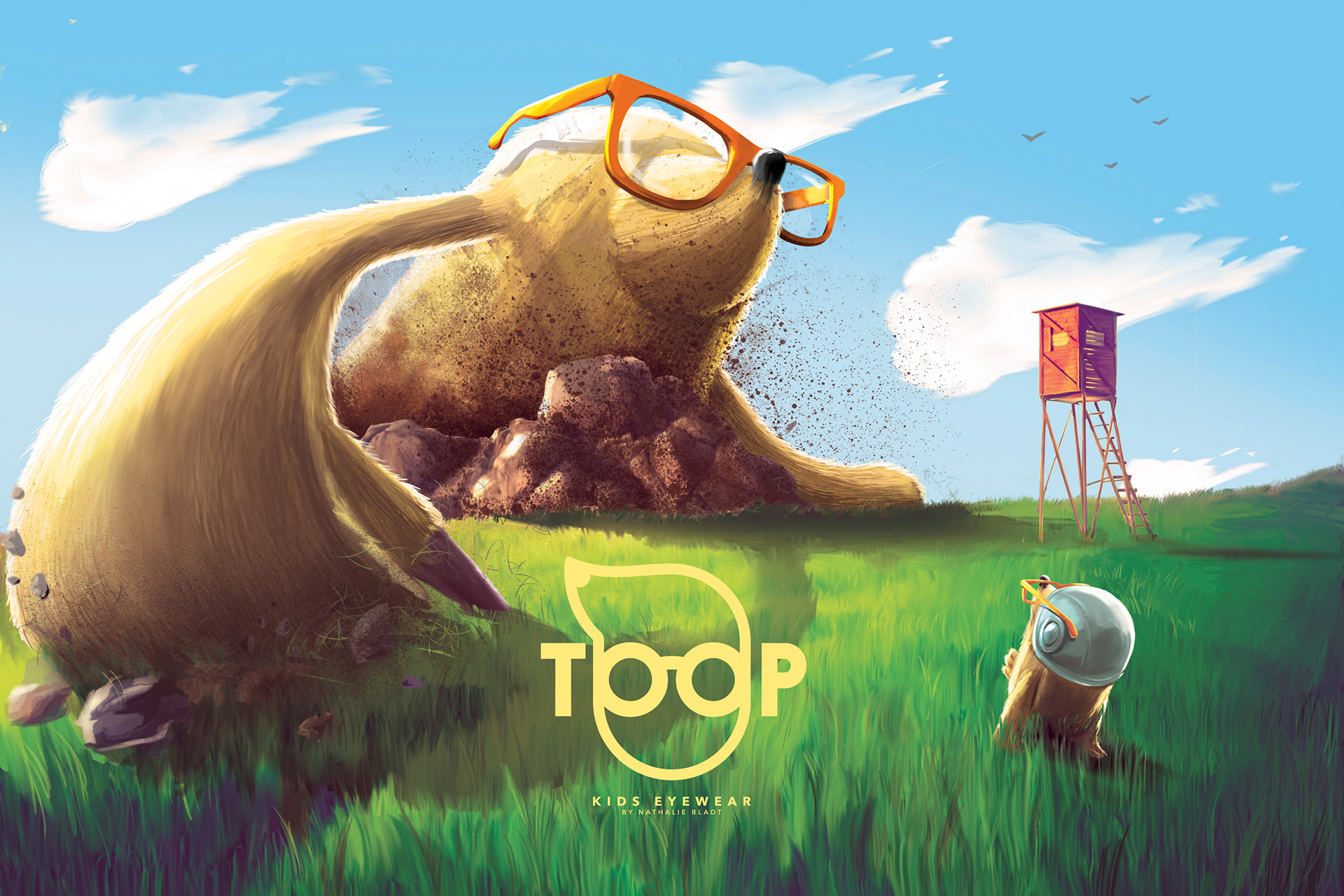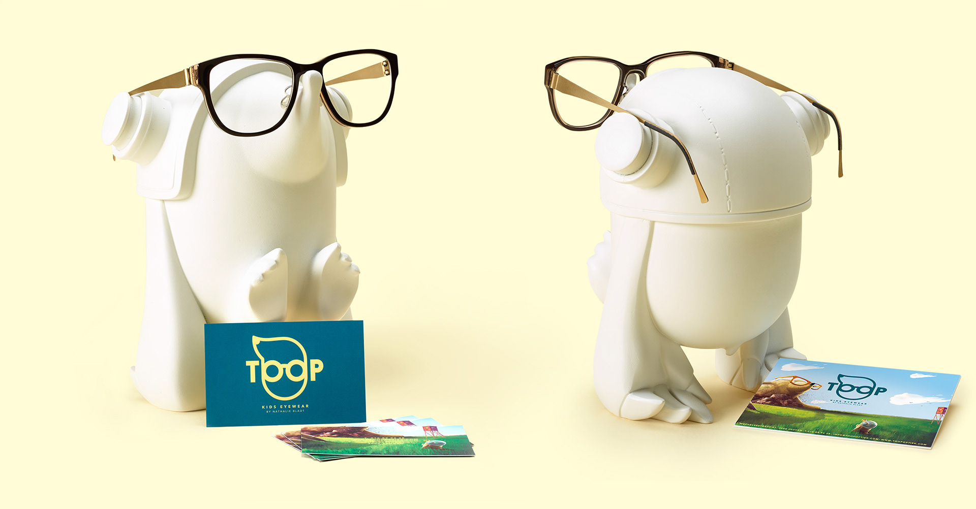 TOOP Kids optician is a blind mole's (taupe in french) fantasy with a designer toy at the center of it's identity. Character design & illustrations - Pinkeye Designstudio in collaboration with William Fort -